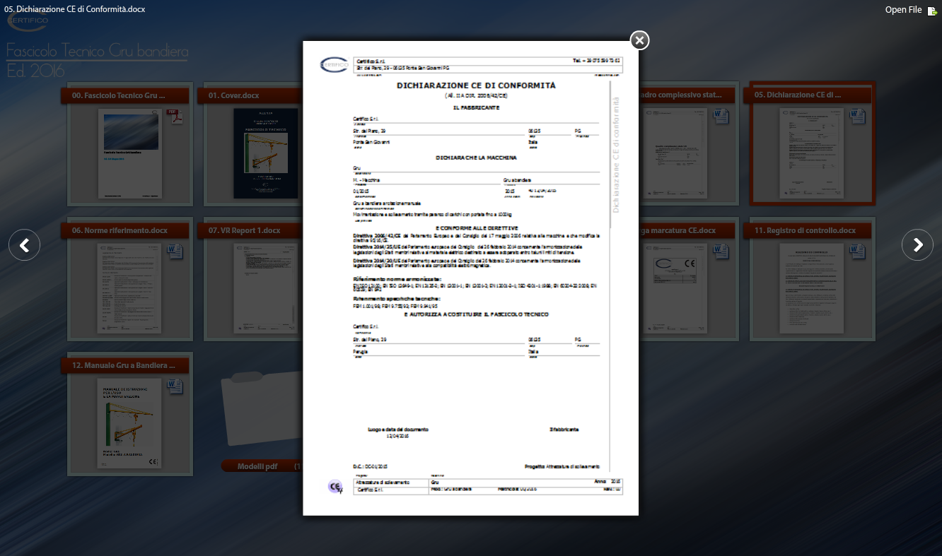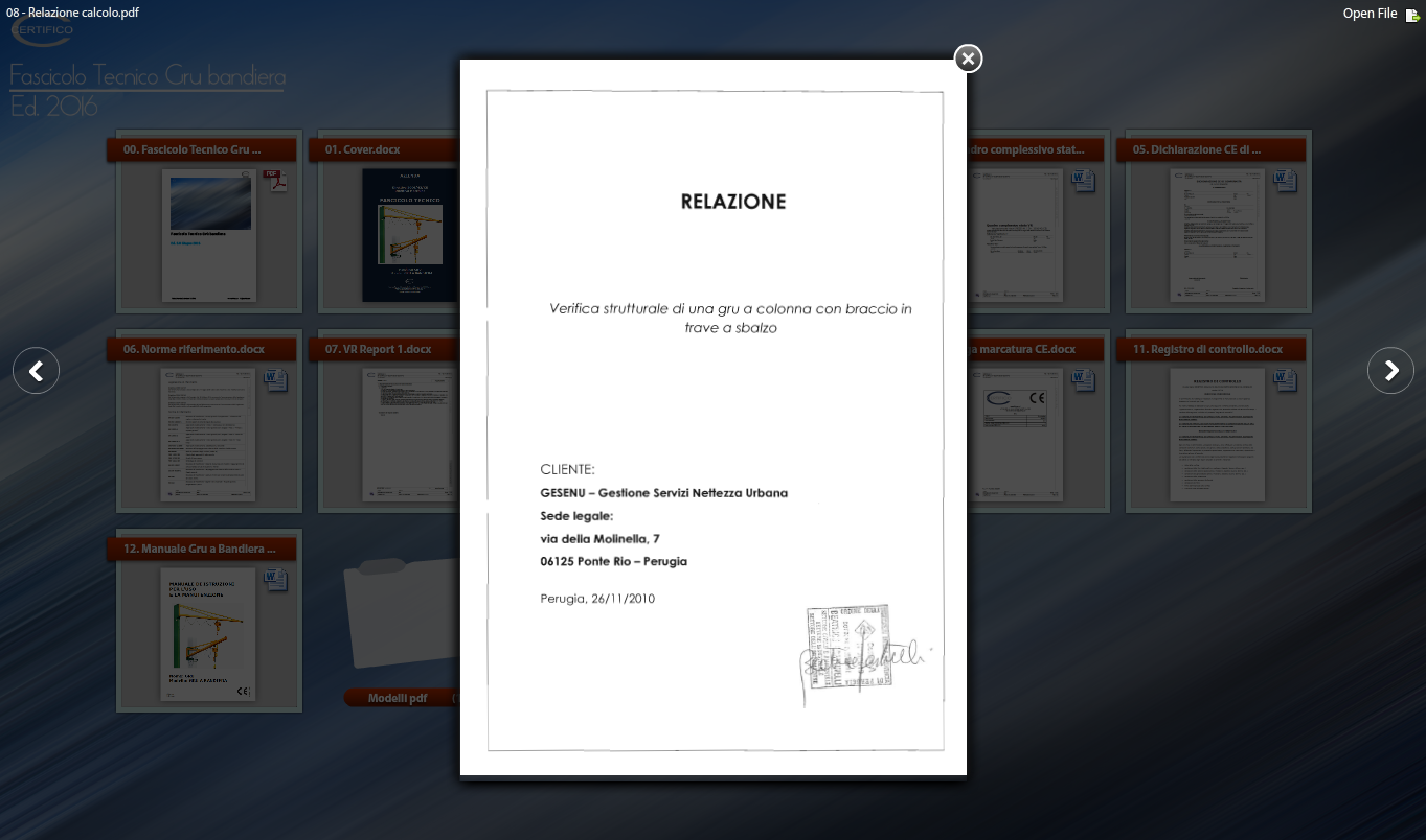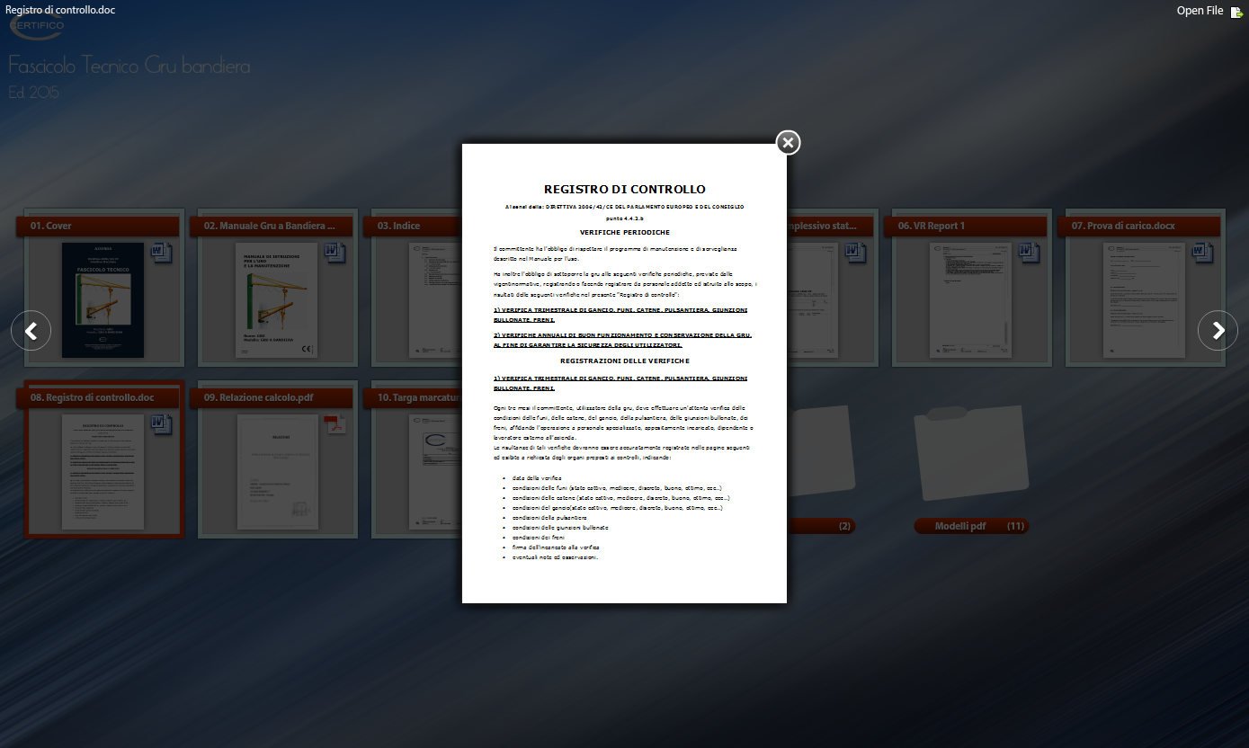 • Certifico Fascicolo Tecnico Gru Bandiera