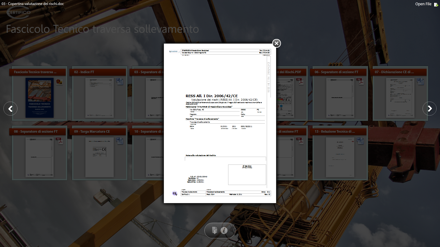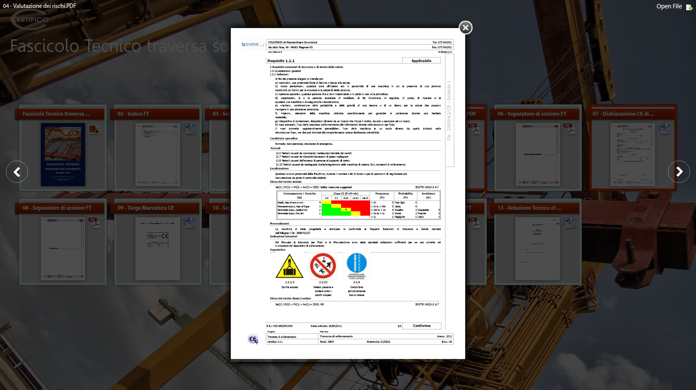 • Certifico Fascicolo Tecnico Traversa Sollevamento