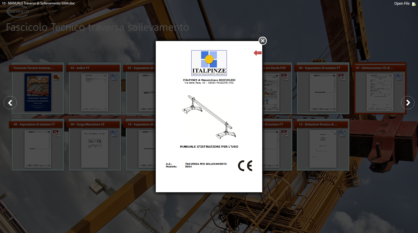 • Certifico Fascicolo Tecnico Traversa Sollevamento