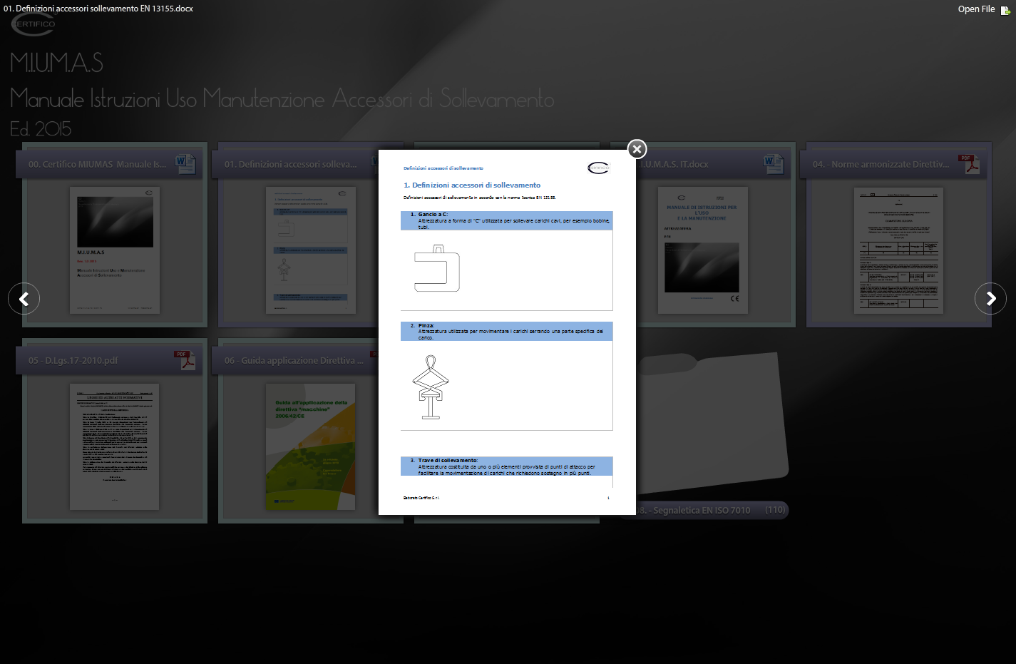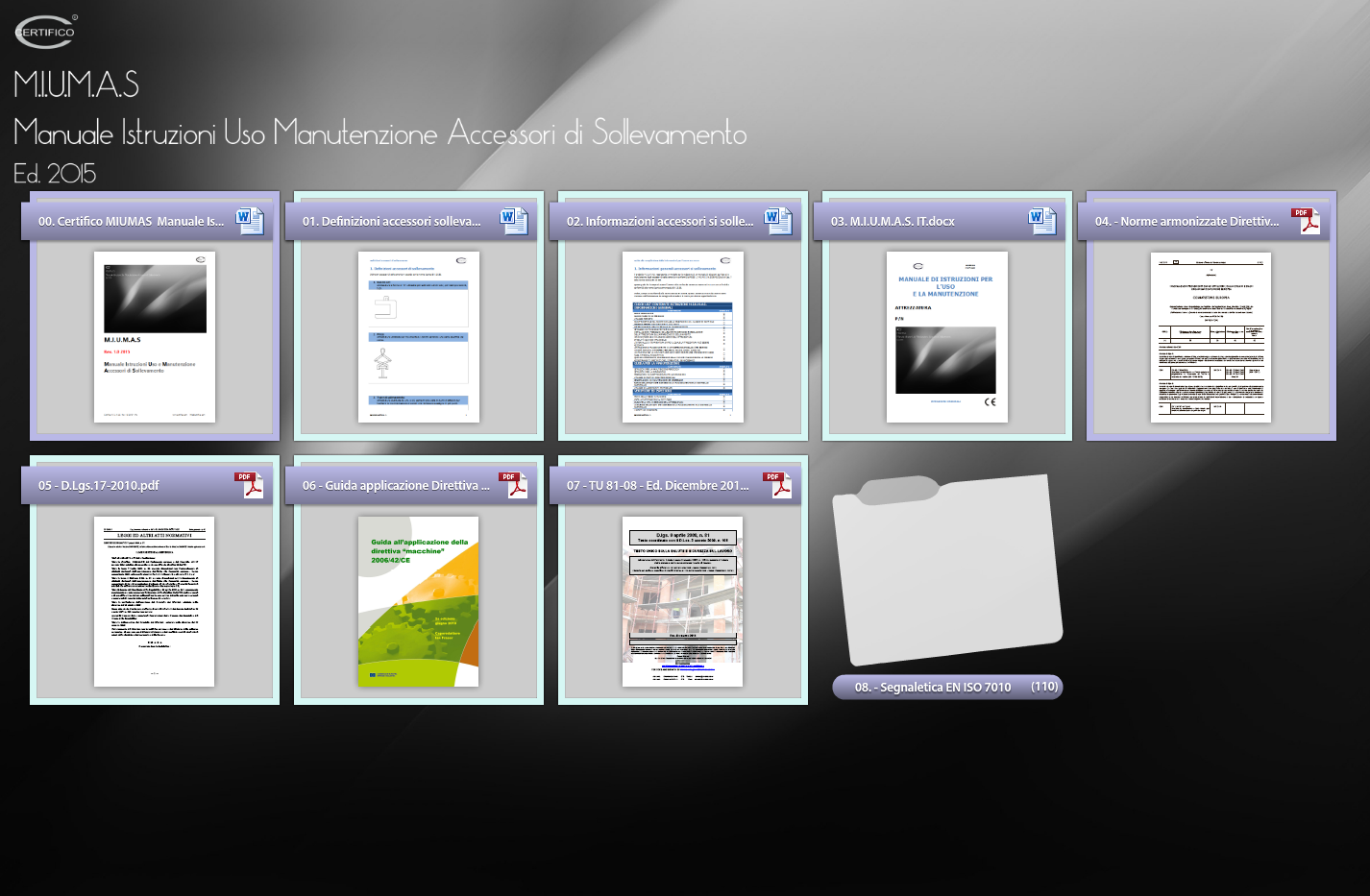 • Certifico M.I.U.M.A.S. Manuale Istruzioni Uso e Manutenzione di Accessori di Sollevamento