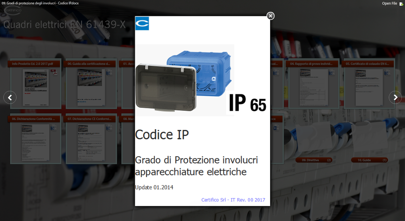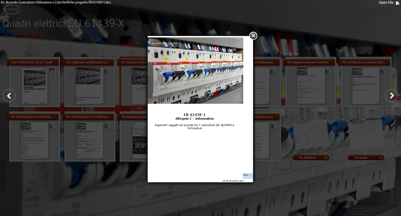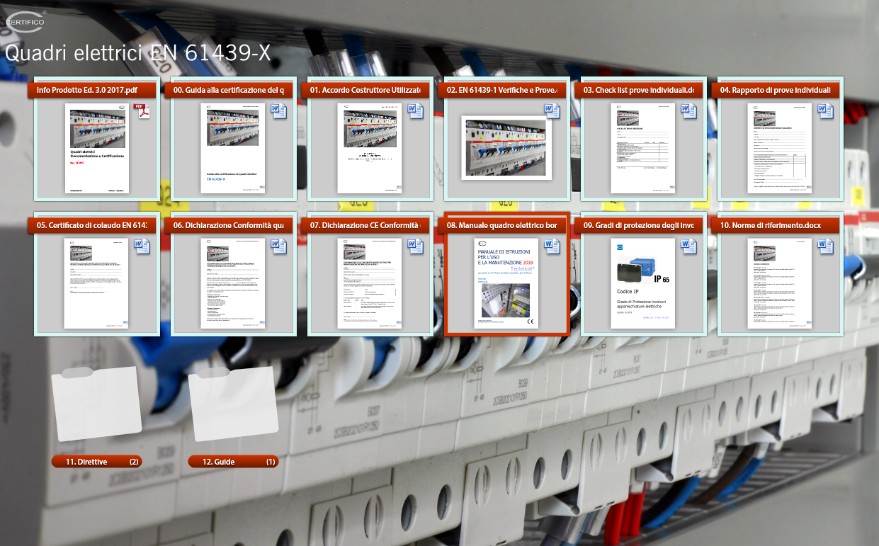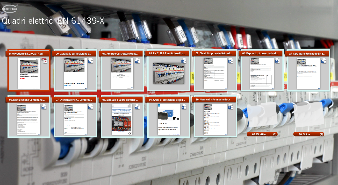 Certifico Quadri elettrici (Documentazione e Certificazione) è un Prodotto per la redazione della Documentazione Tecnica e Certificazione dei Quadri elettrici in Conformità alle Direttive BT 2014/35/UE ed EMC 2014/30/UE e norme della serie EN (IEC) 61439-X.