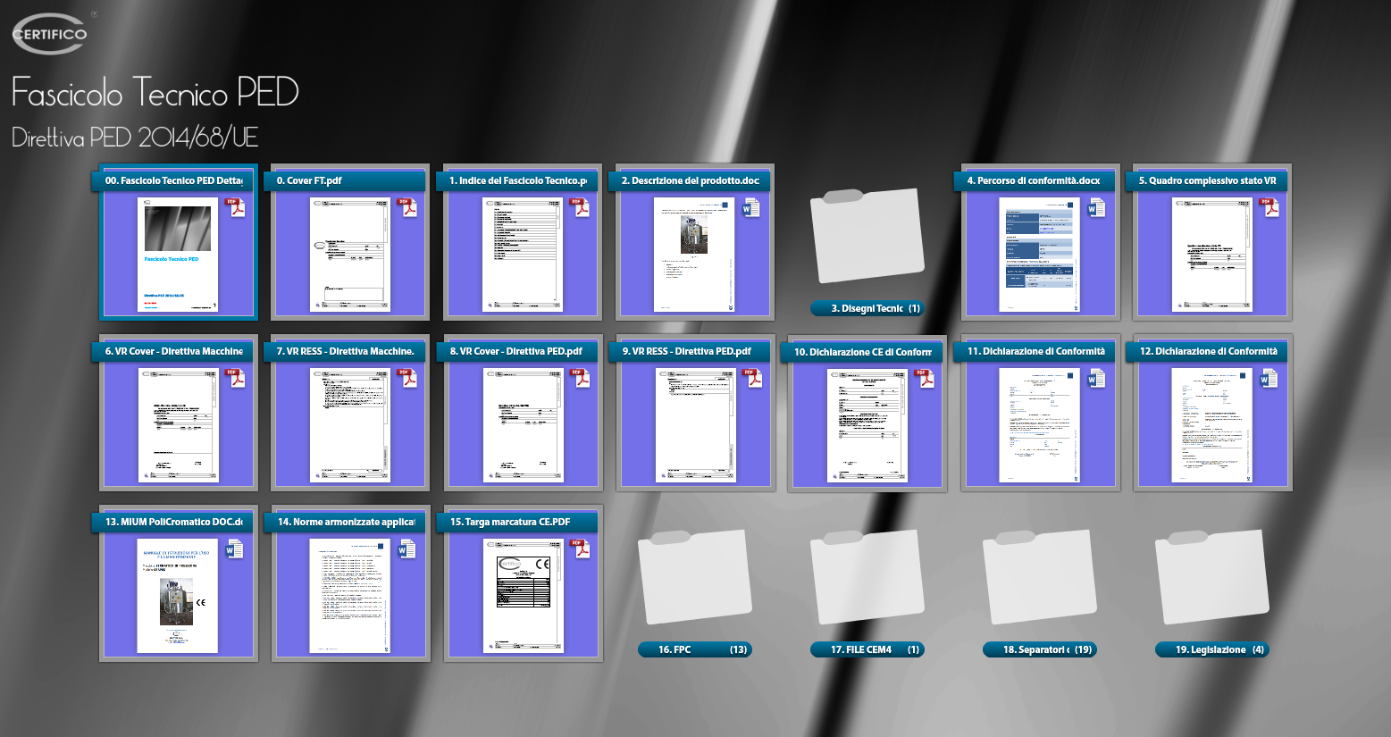 Il Fascicolo Tecnico PED è un Prodotto per la redazione della documentazione prevista dalla Direttiva PED 2014/68/UE e dalla Direttiva Macchine 2006/42/CE.